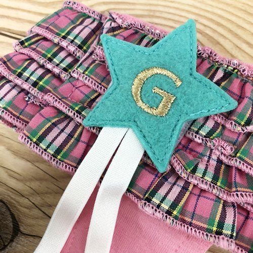 タータンチェックに星形ワッペンをON!さらにチェックフリルで可愛さをプラス!
