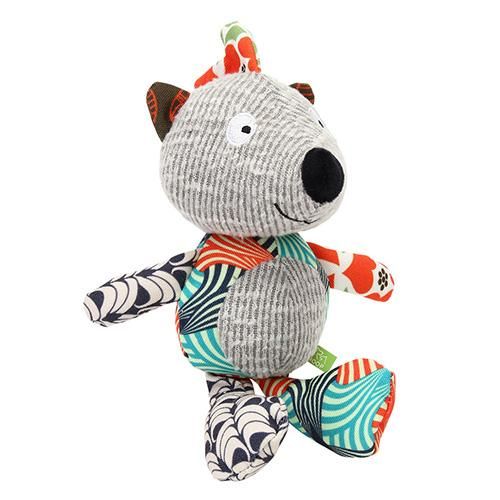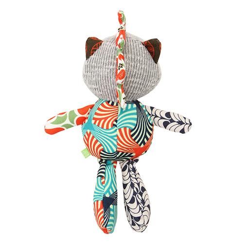 灰色部分はふわふわとした生地、胴体部分などは硬めの生地と!ひとつのおもちゃで異なる感触を楽しめます。