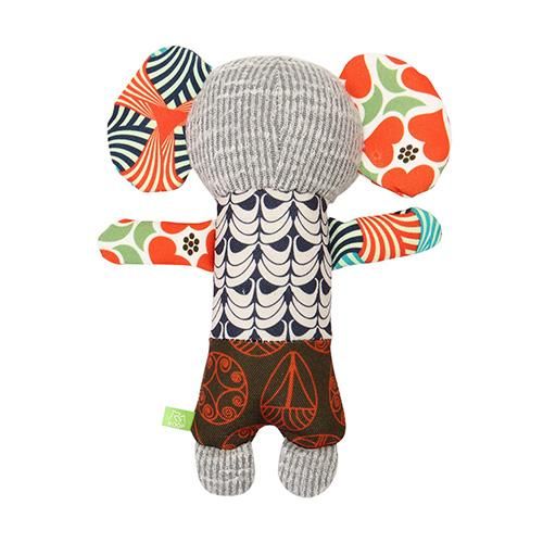 灰色部分はふわふわとした生地、胴体部分などは硬めの生地と!ひとつのおもちゃで異なる感触を楽しめます。