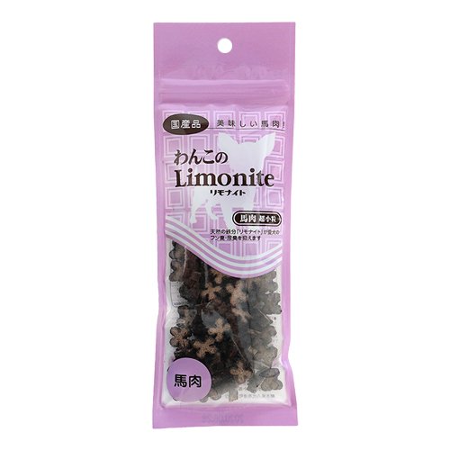 【原材料】馬肉、澱粉、リモナイト、澱粉分解物、ソルビトール、おから、グリセリン、鹿の角、高麗人参、ガゼインNa、保存料(ソルビン酸カリウム)、リン酸Na、ローズマリー抽出物、酸化防止剤(ビタミンC、ビタミンE)