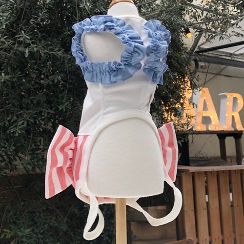 紐に脚を通すだけなのでロンパースが苦手なワンちゃんにもオススメです♪