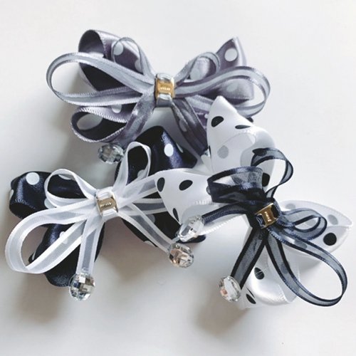軽くて少量の毛でもしっかり挟まるので、トップノットや耳の毛にもお付けいただけます。