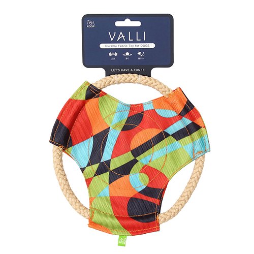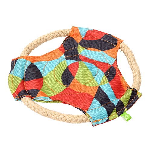 フレームにTシャツロープを使用した、フリスビー型のおもちゃです♪