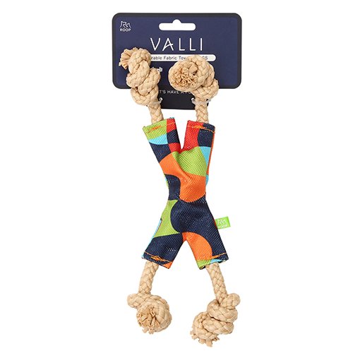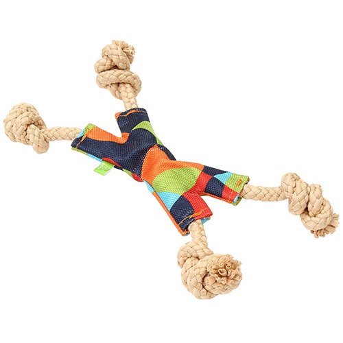 生地とロープの2種類の噛み心地が楽しめる♪4つ股になったユニークなおもちゃです。