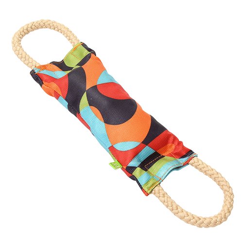 高密度に織られた丈夫なナイロン生地とTシャツロープが組み合わさった、ユニークなドッグトイ★