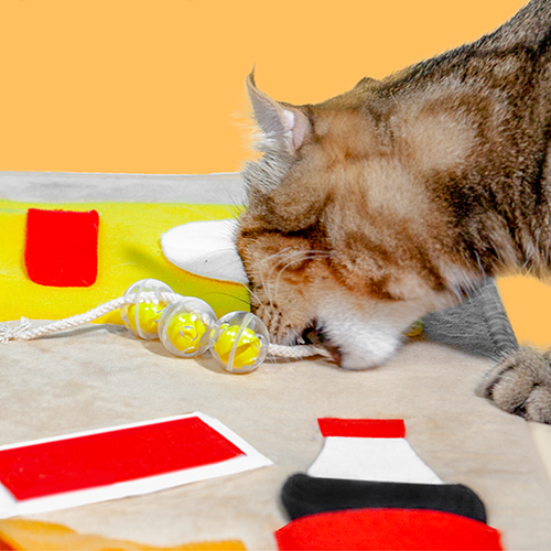 わんちゃん・ねこちゃんの好奇心をくすぐる仕掛けが満載のマット型おもちゃです。