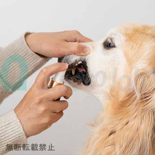 直接スプレーされるのを嫌がる子には、指に液体を付けてからお口の中になじませてあげてください。