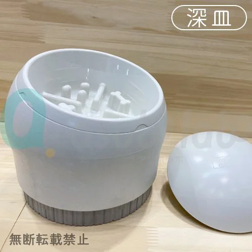また、お皿は4方向(90度ごと)に向きを変えることができるので、定期的に変えていただくことで食べ慣れ(凹凸に対する慣れ)を防ぎます。