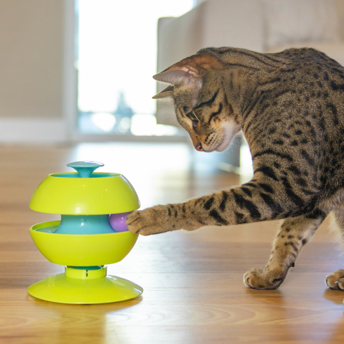 キャット・トラックに変換できる「ツイスト・ボールトラック」は、多才で継続したチャレンジを欲し、ボールを追う事が大好きな猫の為にデザインされたおもちゃです。