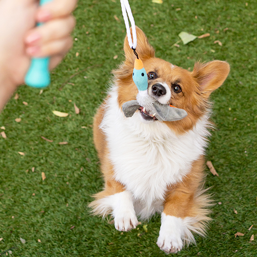 逃げるおもちゃを捕まえるため、走って!飛び跳ねて!飛びついて!捕まえた時に発する楽しい音でわんちゃんのワクワク感を更に増し、ダイナミックな遊び時間が長続きします。
