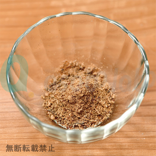 新鮮な状態でジャーキーにし、低速回転ミキサーで粗挽きのふりかけに仕上げました。