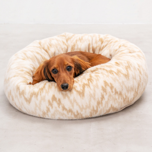 毛足が長めのボア生地を使用した、あたたかなラウンドベッドです。