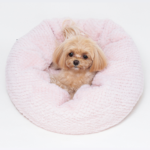 パイナップルボア生地を使用した、あたたかなラウンドベッドです。