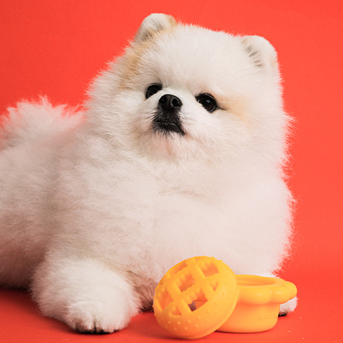 おもちゃの中に入ったおやつを取り出すために、たくさん考えることで知育につながります。