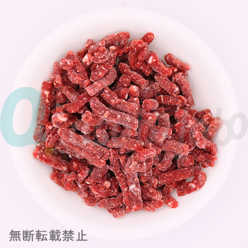 冷蔵庫で解凍後、煮るまたは焼くなど、お肉に火を入れてから与えてください。