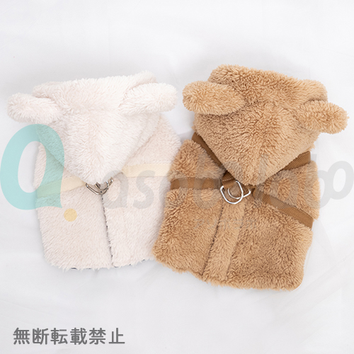 ふわふわボア生地とテラヘルツ生地でお作りした、お洋服一体型ハーネス★