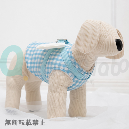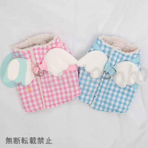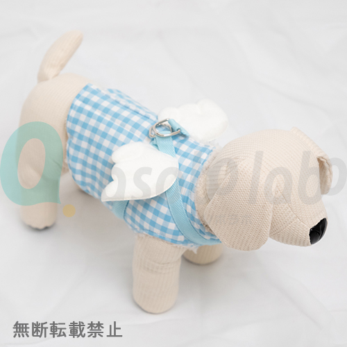 "天使の羽" が付いた、ギンガムチェック柄のお洋服一体型ハーネス★