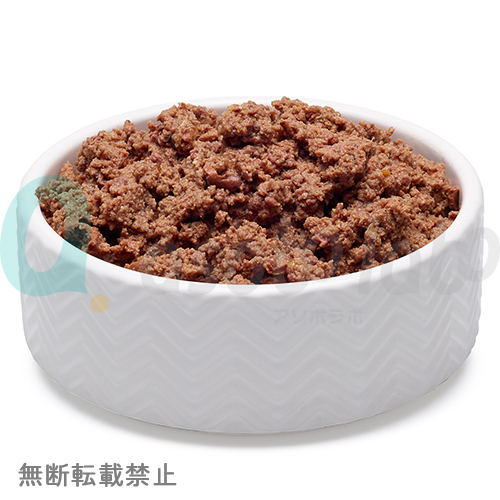 【原材料】ビーフ(ミート、肺、肝臓)、緑イ貝、ポテトスターチ、サーモンオイル、ラム血漿、フレーバー、キウイフルーツ、ブルーベリー、カボチャ、スイートポテト、ニンジン、亜麻仁ミール、マヌカハニー、乾燥ケルプ