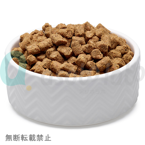 【原材料】サーモン、ツナ、ホキ、ラム、亜麻仁、緑イ貝、ナチュラルフレーバー、キウイフルーツ、ブルーベリー、カボチャ、スイートポテト、ニンジン、マヌカハニー、乾燥ケルプ、ソルト、ミックストコフェロール(酸化防止剤)