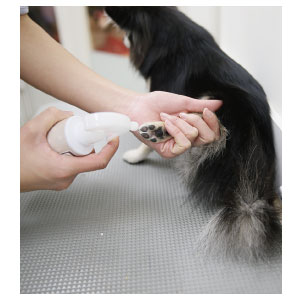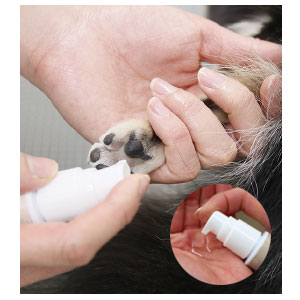 - [1] アヴァンス化粧水を肉球にスプレーし汚れを落とします。乾燥や硬さが気になる時は、2~3回重ね付けをします。