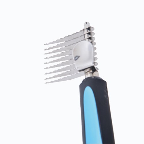 カマのような特殊な長いブレードで、毛玉を簡単に割くことができます。