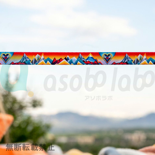 特徴的なハートマークのシンボルとともに、大胆でカラフル、イマジネーション豊かな山々のデザインは、あなたと愛犬に癒しとインスピレーションを与えてくれます。