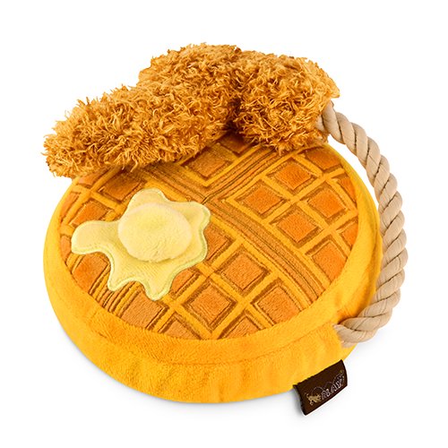 チキンとワッフルはTシャツ素材をぐるぐる捻ったロープでつながれています。
