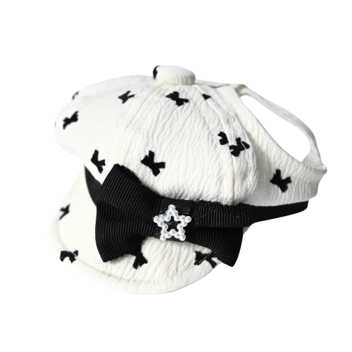 小さなリボンのプリントと大きなリボンがおしゃれなキャスケット★