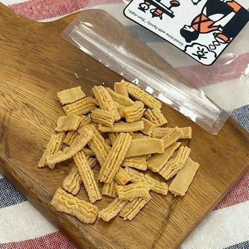 小型のわんちゃんもカミカミしやすい形状のおやつに仕上げました。