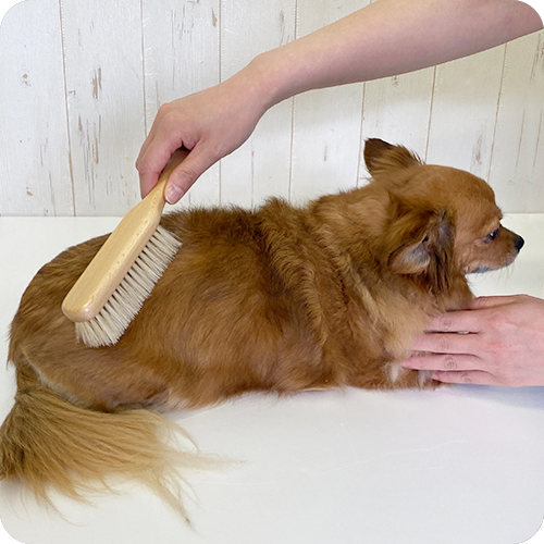 刷毛(ハケ)のようなとても柔らかい肌ざわりなので、皮膚の敏感な子や極度にお手入れを嫌がる子の練習用としても最適。