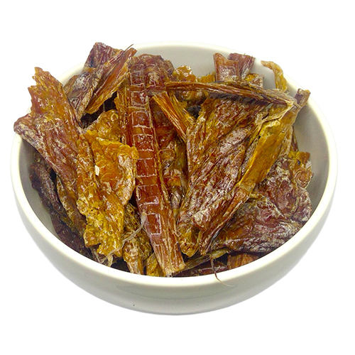 希少な鶏の卵管のジャーキー。パリッと食感で与えやすい。