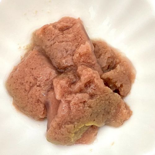 【成分値】粗たん白8.5%以上、粗脂肪0.8%以上、粗繊維0.1%未満、水分89.4%以下、粗灰分0.2%以下