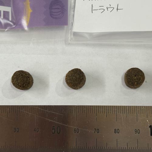 【原材料】トラウト(マス)、乾燥ニシン、乾燥メンハーデン(ニシン科)、オートミール、ひよこ豆、キビ、キャノーラオイル、パンプキン、アルファルファ、フィッシュスープ(トラウト)、ナチュラルフレーバー、塩化カリウム、サーモンオイル、亜麻仁、ビートパルプ、ココナッツオイル、ブルーベリー、クランベリー、にんじん、りんご、トマト繊維、パンプキンシード、チアシード、キヌア、海藻、塩、タウリン、塩化コリン 、ビタミンE、ビタミンC、ナイアシン、ビオチン、パントテン酸カルシウム、ビタミンA、ビタミンB2、ビタミンB6、ビタミンB1、ビタミンB12、ビタミンD3、葉酸、硫酸亜鉛、硫酸鉄、鉄アミノ酸キレート、亜鉛アミノ酸キレート、セレニウム酵母、銅アミノ酸キレート、硫酸銅、硫酸マンガン、マンガンアミノ酸キレート、ヨウ素酸カルシウム、ローズマリーエキス、スペアミント、緑茶エキス