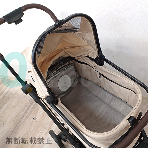 強力ファンから取り込んだ空気は内部の保冷ジェルで冷やされて、マットの表面から放出。熱がこもりがちなカートの中で、暑さが苦手なペットも涼しく快適に過ごせます。
