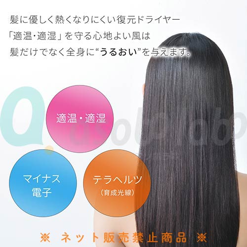 「マイナス電子」と「遠赤外線」の効果を高めるために、復元ドライヤーの風を全身に浴びながらゆっくりと楽しみましょう。