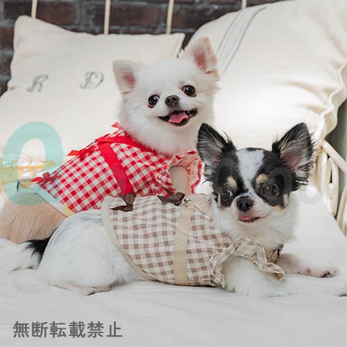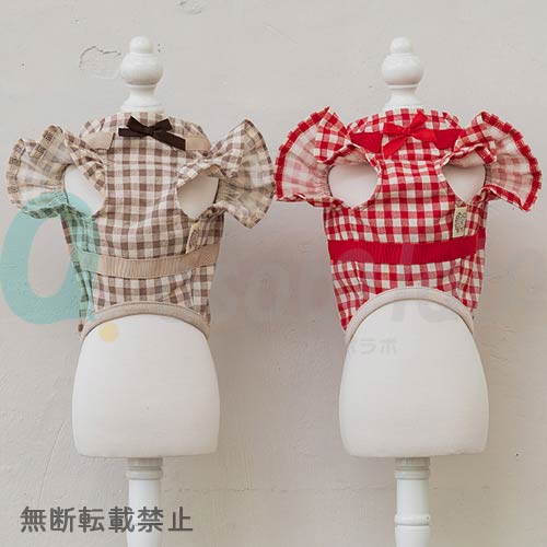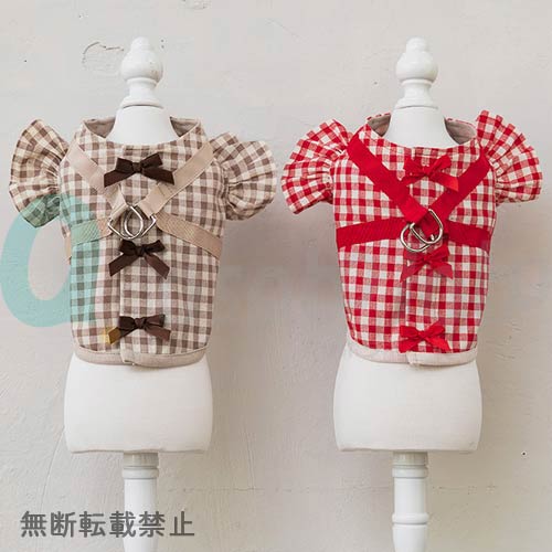 チェックとリボンのラブリーなお洋服一体型ハーネス★