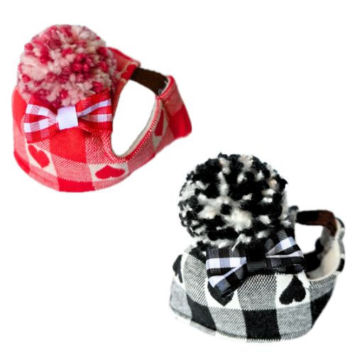 チェック柄にハート模様がとっても可愛いニットパイロット帽です!
