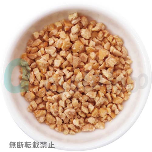 【成分値】粗タンパク質42.0%、粗脂肪29.2%、粗炭水化物22.2%、粗灰分 4.9%以下、水分1.7%、ナトリウム0.12%、食物繊維15.7%、糖質6.5%