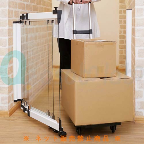大きな荷物や台車でもラクに通行でき、使わないときは180度開閉で左右どちらでも壁面に沿って収納可能です。