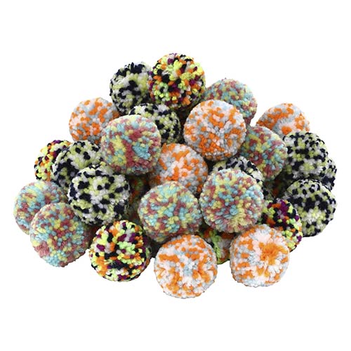 柔らかな触感の毛糸でできたミックスカラーのモコモコのボール型おもちゃです。