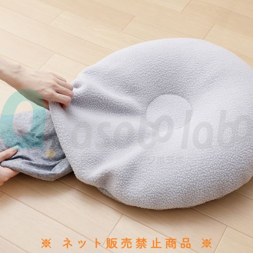 ファスナーを開き、内側の布を出してビーズを移動させると、四角いグレーの冷感ベッドに変身するリバーシブルタイプになっており、オールシーズンお使いいただけます。