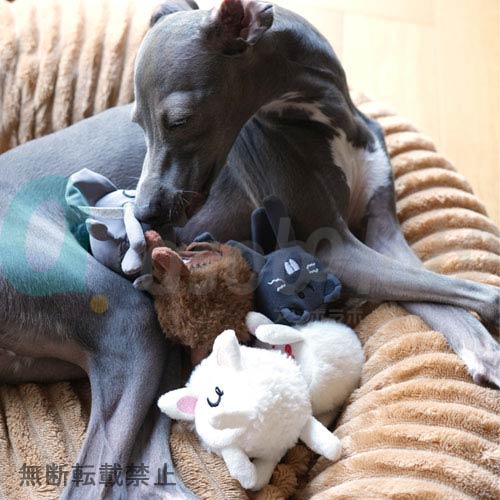 人が触っても気持ち良く、握っていたくなるモニュモニュしたさわり心地は、カミカミが好きなワンちゃんも虜に。また、手足を咥えて振り回すとパリパリと音が鳴り、ワンちゃんがひとりで長い時間楽しめます。