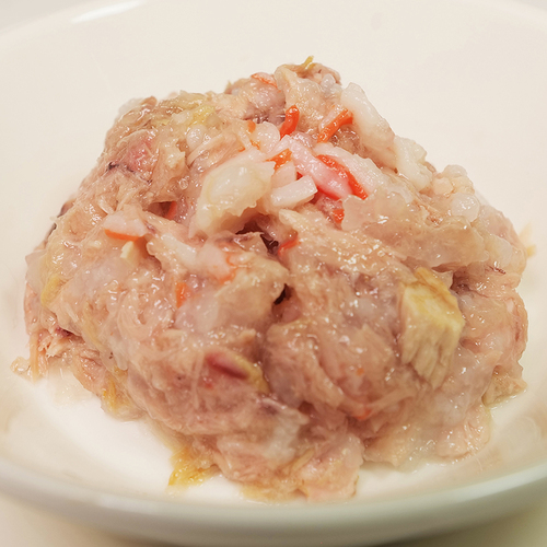 マグロとすり身で、被毛の健康維持に必要なオメガ3脂肪酸を補給し、嗜好性と水分補給に配慮したジュレ仕立てのレシピです。