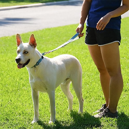 人混みや交通量の多い場所でも愛犬をそばでコントロールできます。