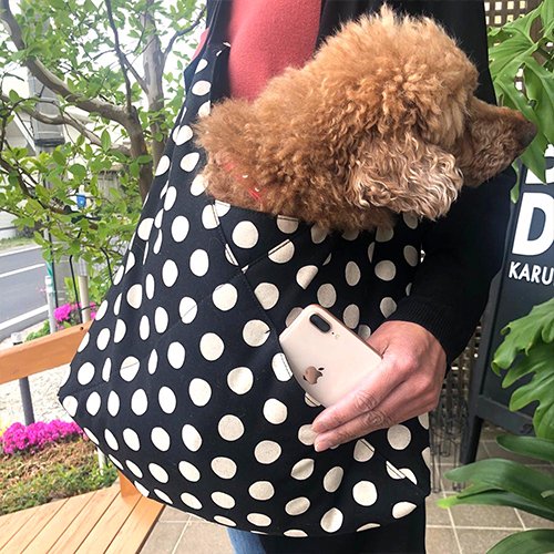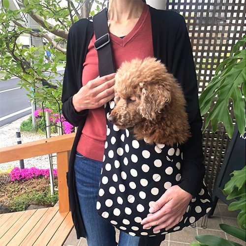 お散歩やカフェに行く時、簡単にわんちゃんを抱えられ、ママもわんちゃんも快適なスリングです。