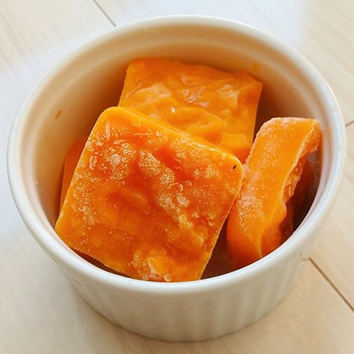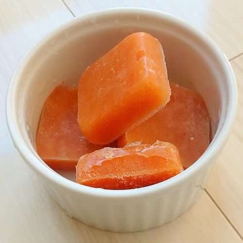 ●1ブロックごとに取り出し、冷蔵庫で解凍してから与えてください。