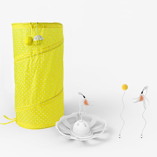自動回転フェザーベースが付いた猫用トンネルおもちゃ★