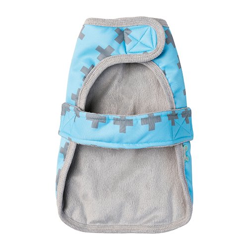 首周りとお腹周りをベルクロでとめるだけのシンプルなつくりのラップベスト。