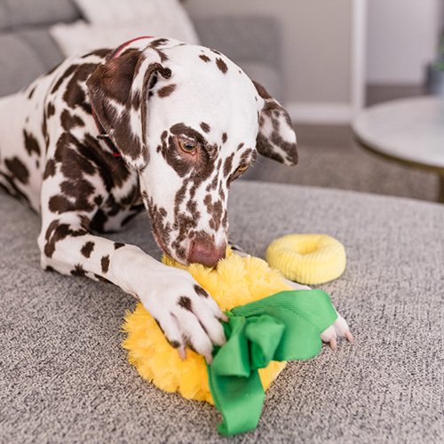 P.L.A.Y.のTOYシリーズはベロア製で肌触りがよく、ワンちゃんの興味を惹きつける音も鳴ります。