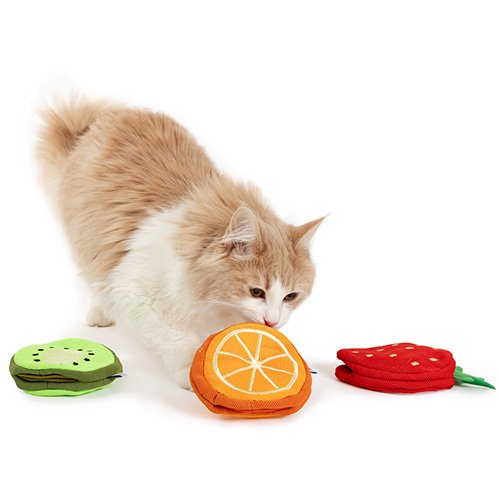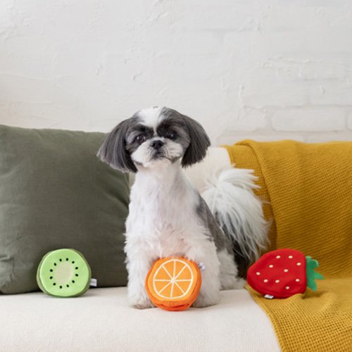 トリーツを隠せるポケットが2箇所付いた、フルーツモチーフの知育トイ★